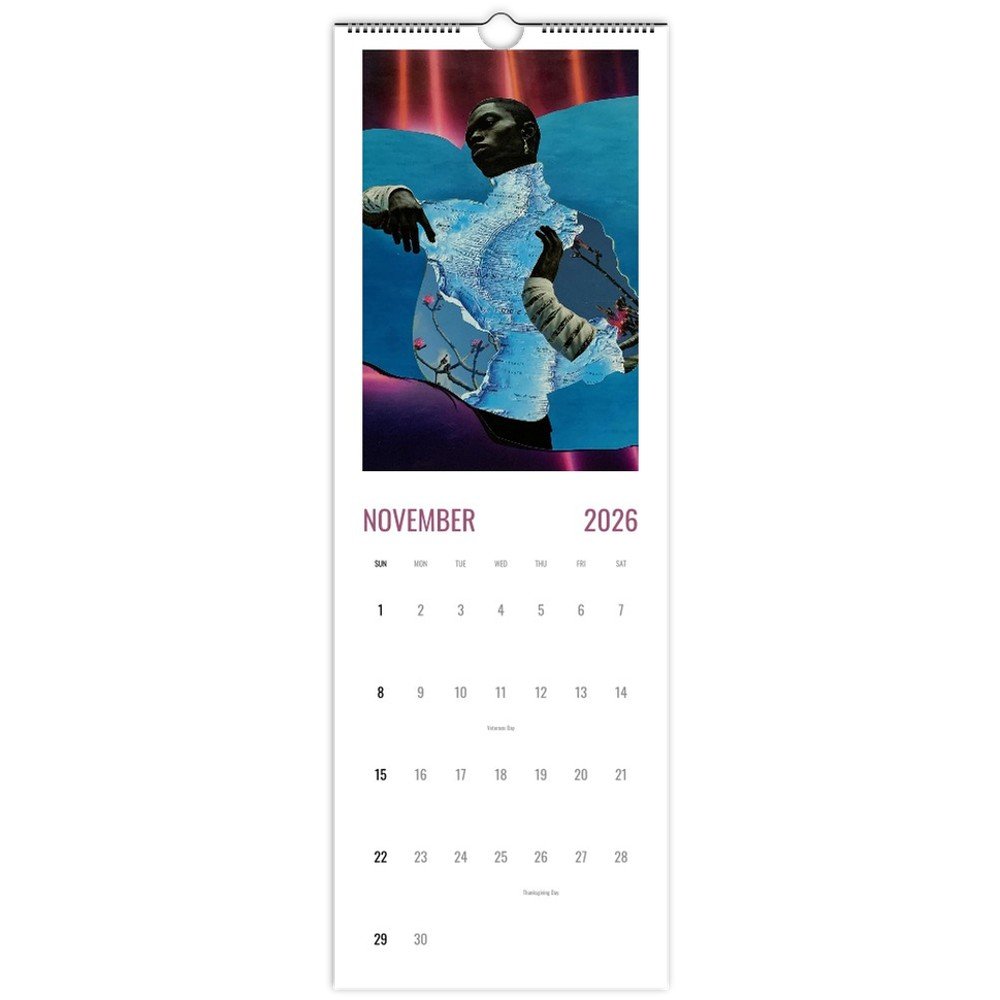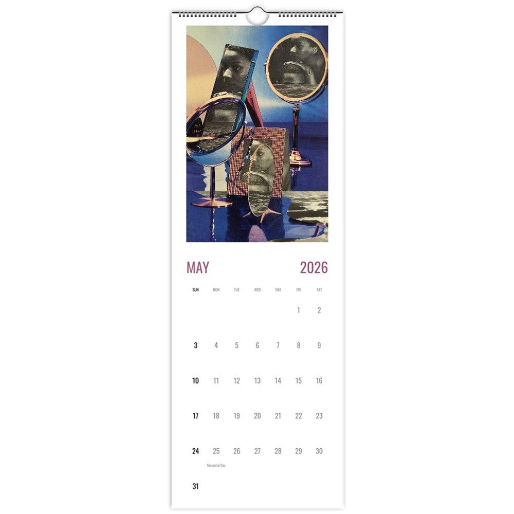 For those who still believe in time, this calendar features collage work by visual artist Yannick Lowery. 5.5" x 16.5". Printed in vibrant, full-color on 250gsm coated silk paper (100 lb cover).